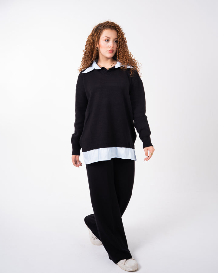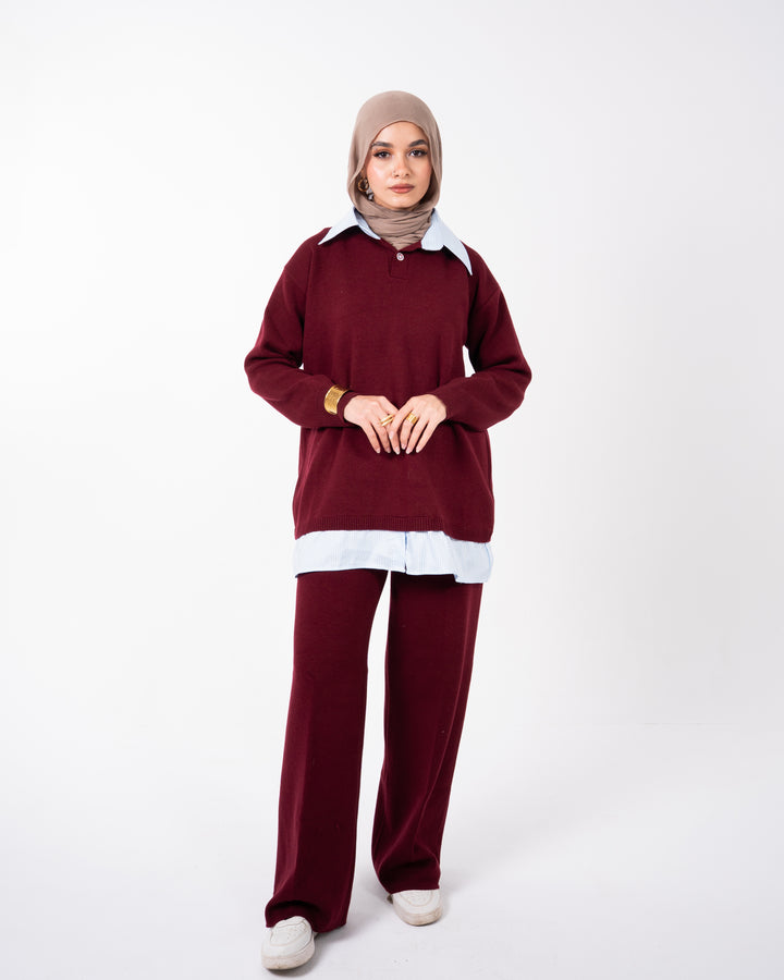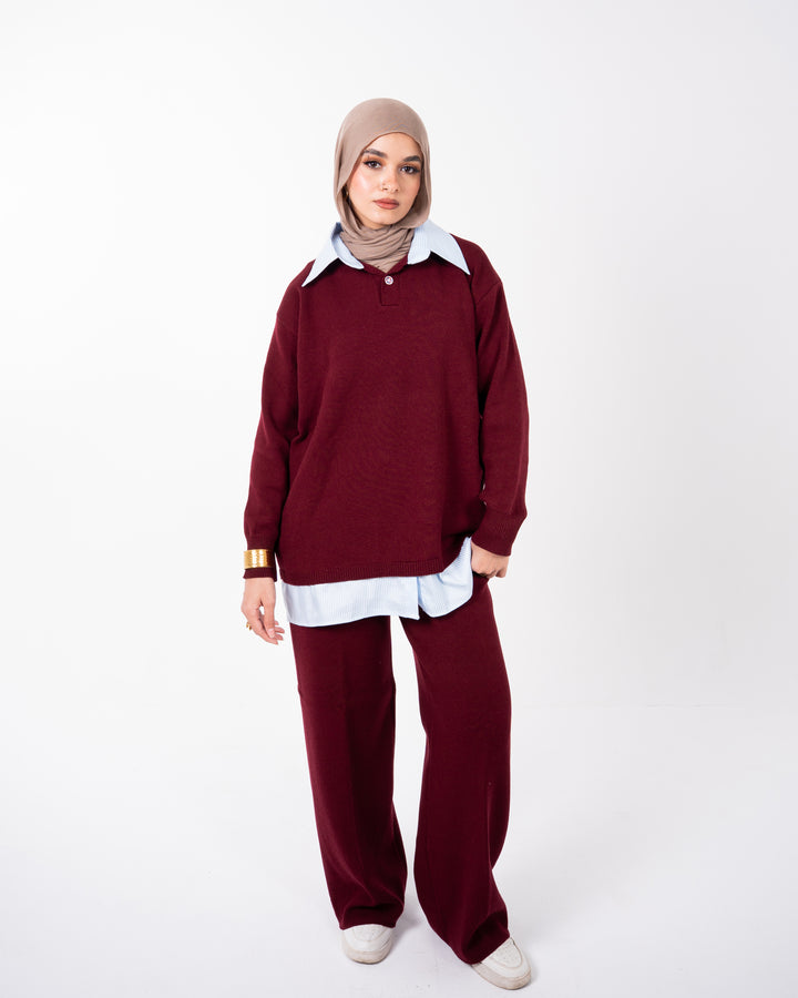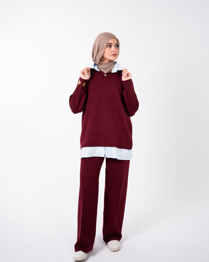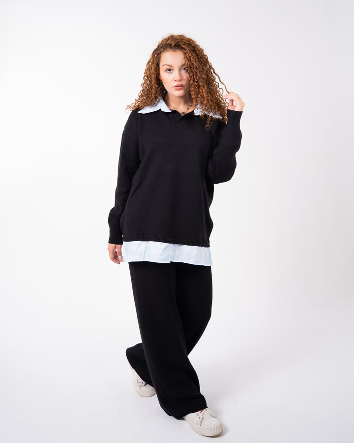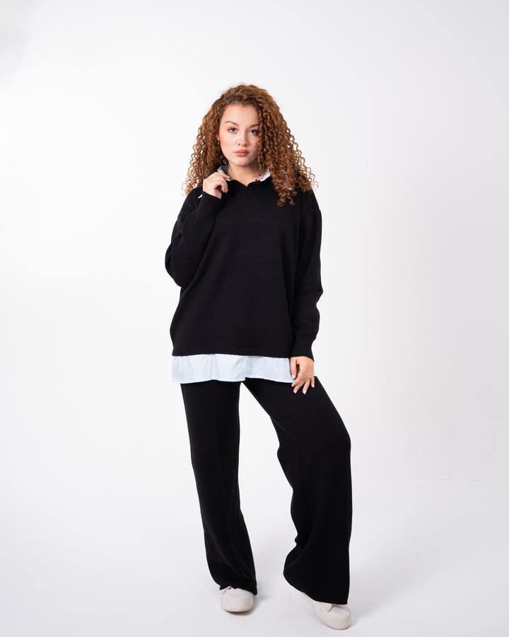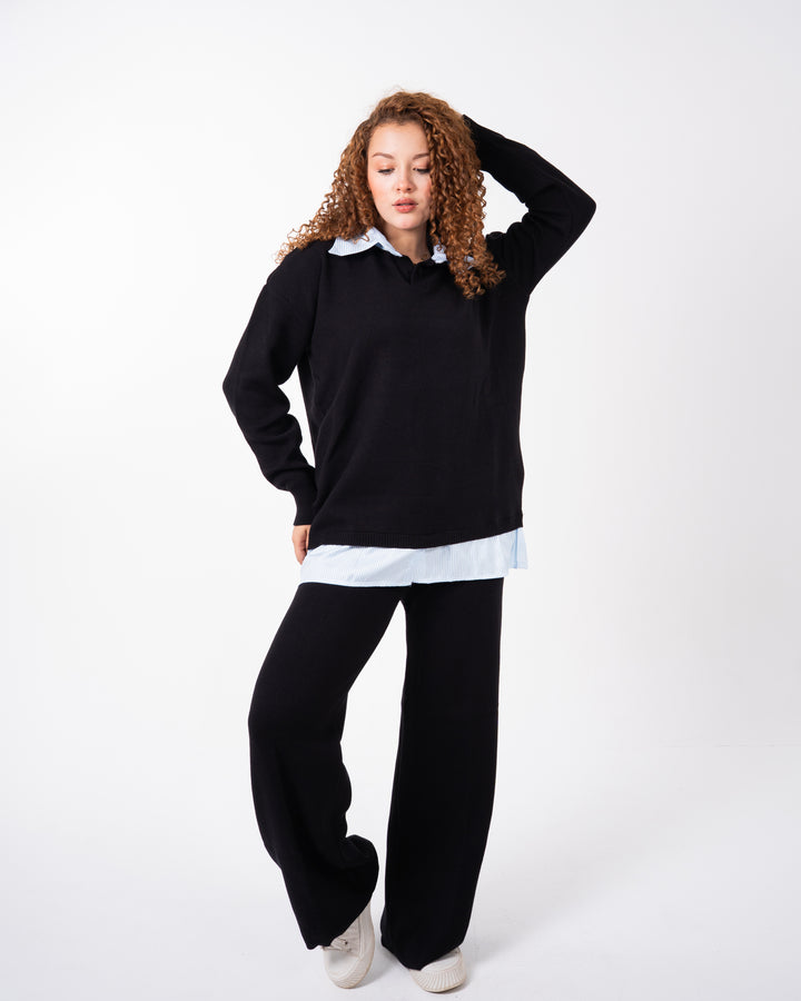This 2-piece oversized knit set (pullover + pants) is crafted to keep you warm and stylish all winter long.